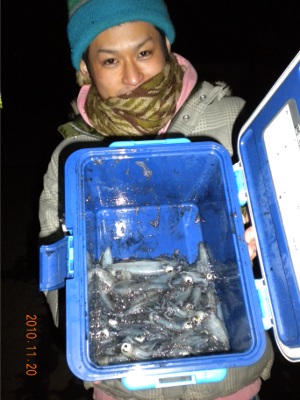 ![]() ![]() 豆イカ釣りは、兄のオッシュと行った事があるが、あまり良い思いでは無かった ![]() というのも、寒い中散々頑張って1杯しか釣れなかったのだ ![]() 果たして今日は…そんな不安の中、現地にPM10時頃到着 ![]() ガードレール前はエギングの方が沢山いらっしゃって管釣り状態だ ![]() 反対側も大変混み合っていて僕らは隅の灯台付近でやってみることに ![]() 1キャスト目ジャークを入れてフォールを繰り返しているといきなり重くなる ![]() ![]() あ、付いてるな ![]() 一回釣り番組でアオリイカの当たりをティップで取るというのを見たことがあったのでやってみる ![]() 普通はラインで当たりを取るのだが、どうもラインで当たりを取ることが出来ない ![]() なので、キャストし、ジャークを入れた後に糸ふけを取り、カーブフォールさせる ![]() するとティップが徐々に曲がっていく ![]() ![]() お、抱いたな ![]() ![]() ピッとフッキングを入れると豆イカが付いてくる ![]() ![]() この後、20連チャンくらい連続ヒットする ![]() ミム氏も淡々と釣り上げていた ![]() かなり、ハマッたようだ ![]() そして、PM11:30頃からパッタリ当たりが無くなり、周りを見渡してみるとエギングの方々もはけていた ![]() 回遊も途切れたということか… ![]() エギングの代わりに大学生くらいの4人組が居たのだが、とってもうるさくてイライラしていた ![]() ![]() 一人は寒い中、ロンTにTシャツを重ね着しただけの格好で、どんだけ丈夫ヤネンと突っ込みたくなるほどだった ![]() ![]() それでもぽつぽつ釣果を伸ばし、AM0時頃飽きてロックに変更 ![]() 3回巻き~のトゥイッチ&フォールのデッドトゥイッチでチビソイゲッツ ![]() その後2匹追加し、同じように誘っていると、少しデカ目のバイトがあった ![]() ![]() 上げてみると20cmくらいのアブさんだった ![]() 夜のアブラコ…素晴らしい(チッコイけど) ![]() AM1:15頃体力の限界ということもあり、先ほど釣り上げた豆イカの数を数えてみることに ![]() ![]() 全部で丁度60杯だった ![]() ![]() 最後にイカと写りたいというのでミム氏を撮ってみた ![]() ![]() 30杯ずつ分けて帰路に着いた ![]() ![]() ↓ポチッとしやす にほんブログ村 使用タックル: ![]() メジャークラフト DAY’S(デイズ) SEASONS ティップが柔らかく、バットが硬い★一番のお気に入りロッド! ![]() ダイワ(Daiwa) 09カルディア 2000 ![]() ヤマシタ(YAMASHITA) ナオリー レンジハンター ![]() エコギア(ECOGEAR) グラスミノー |